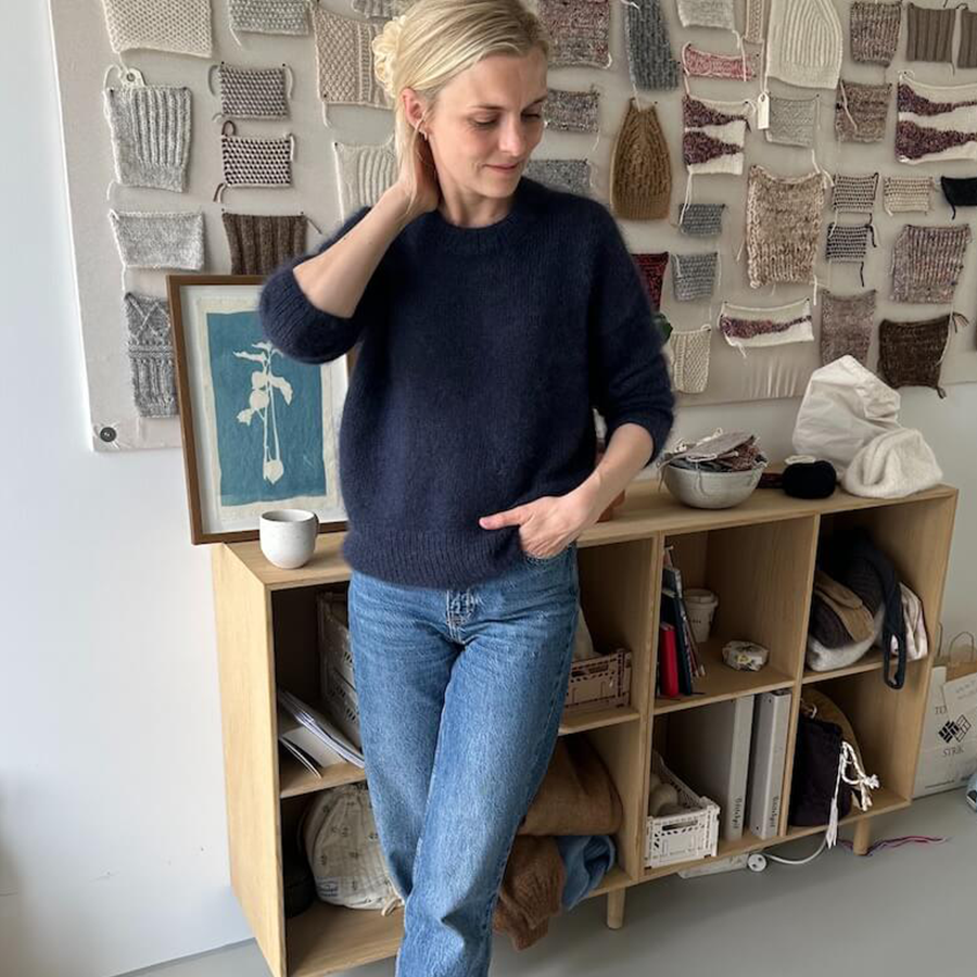 Strikkekittet indeholder som anbefalet Peer Gynt sammen med Tynn Silk Mohair fra Sandnes Garn.
